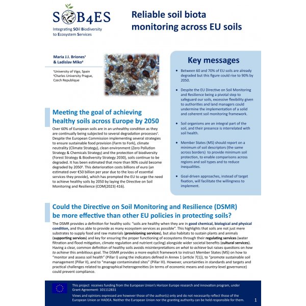 SOB4ES Policy Brief: Reliable soil biota monitoring
